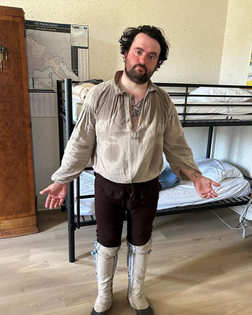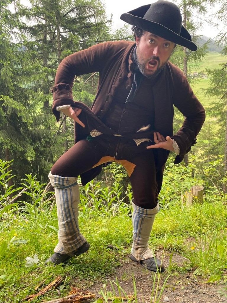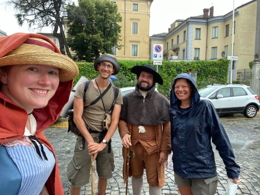 « We wanted to literally and figuratively tailor outfits to the Francigena regions we were hiking. So we chose an 18th century group, the Savoyards, who seasonally emigrated across Europe for work, were Catholic, were present in each country we’d visit, and whose dress we could document enough to fully recreate. »